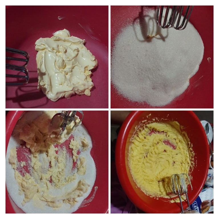 Debemos batir la mantequilla con el azucar hasta que el color de la mantequilla se torne mas claro.