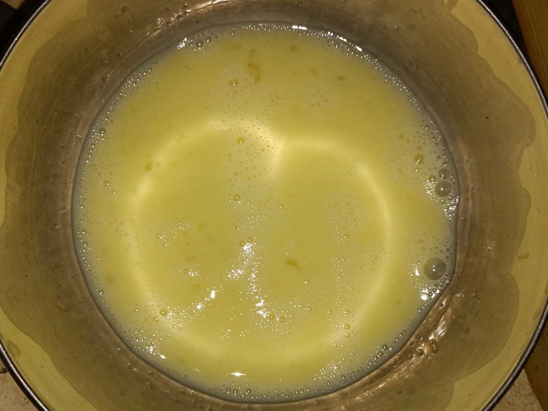When the water came to a boil, I added the beaten egg and cooked it until it thickened.